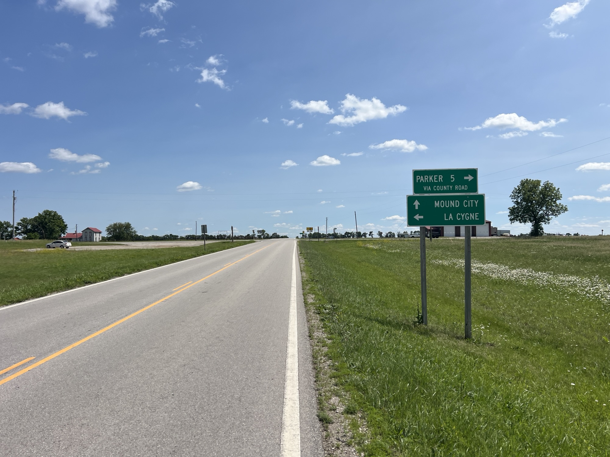 As I leave Parker headed west this is a normal route. I ride quite a bit, but I always like to see if I can see the smokestack thatâs almost in Missouri. Itâs like 2 miles from the border, but I just kinda consider that Missouri. Lacygne power plant