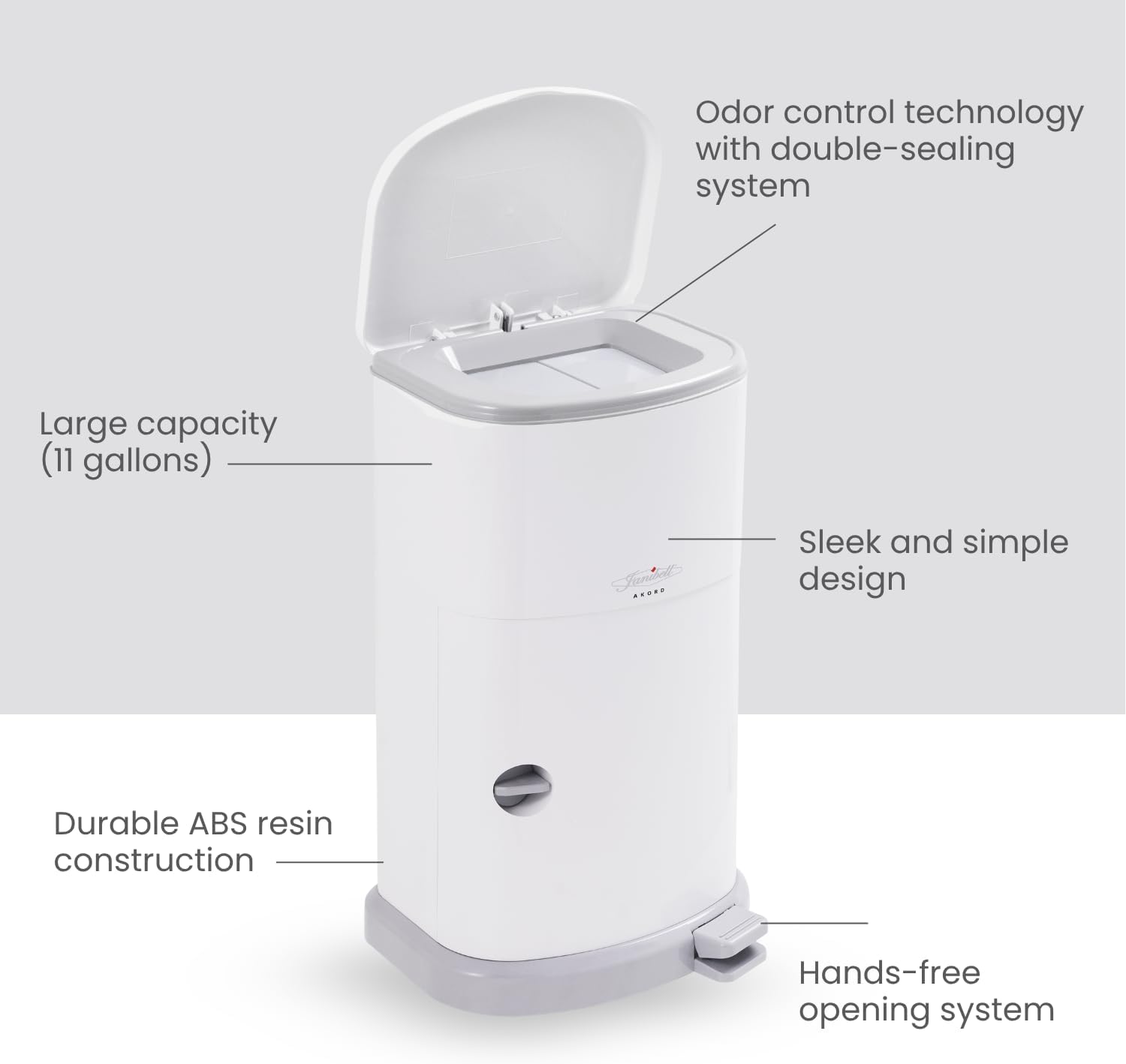 Managing incontinence at home requires a solution that prioritizes hygiene, dignity, and odor control. The Janibell Akord 330 is an 11-gallon, hospital-grade disposal system specifically designed to handle adult-sized briefs and pads. Unlike standard trash cans, the Akord features a double-seal system that traps odors inside, ensuring your living space stays fresh. Its hands-free, step-on pedal operation is essential for caregivers, allowing you to dispose of waste without ever touching the lid, which significantly reduces the risk of cross-contamination.